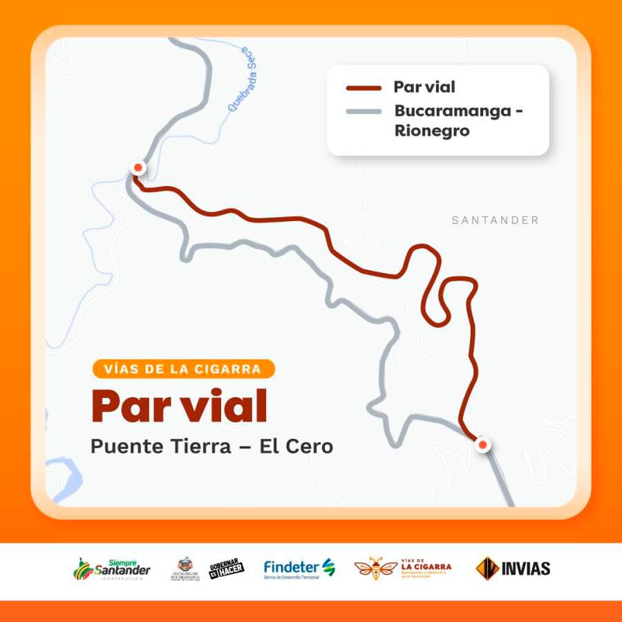 Juvenal Díaz Mateus, gobernador de Santander, publicó a través de sus redes sociales: “¡Buenas noticias para Santander! Findeter adjudicó la licitación del par vial El Cero – Puente Tierra, de la vía Bucaramanga – Rionegro. Tramo de 4 kilómetros, correspondiente al Programa de Vías de la Cigarra. Este es uno de los 12 proyectos estratégicos que nos ayudará a mejorar la movilidad en el área metropolitana”.